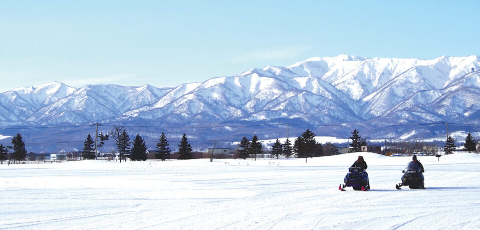 広大なゴルフ場内をスノーモービルで巡るツアー。パウダースノーを駆け巡り、途中の絶景スポットでのコーヒーブレイクも楽しめます。