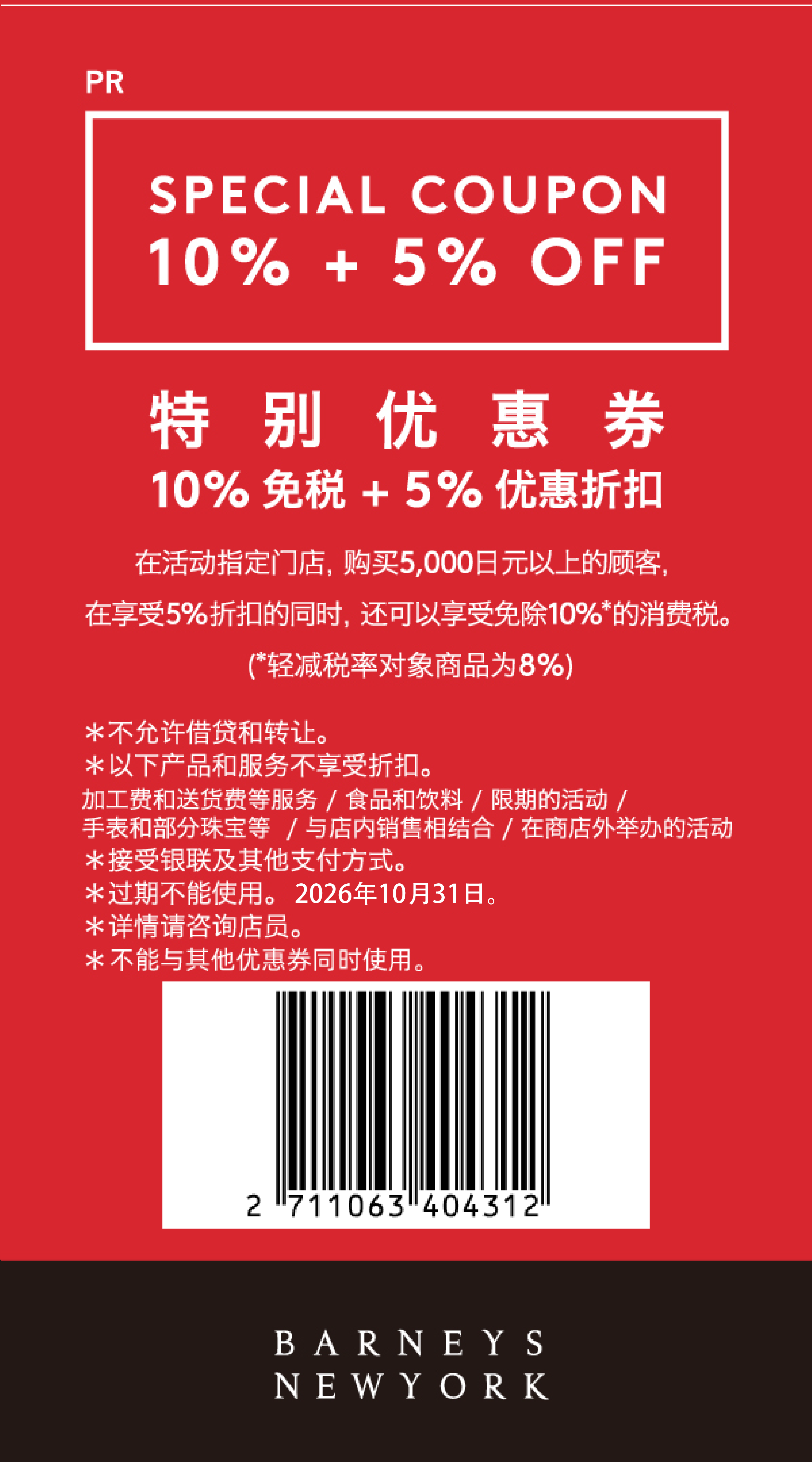 请在付款前出示您的護照和此優惠券